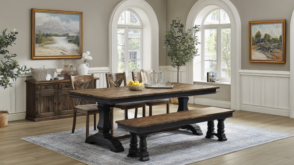 Perhaps our most popular category, transitional furniture bridges the gap between traditional and contemporary styles. These dining tables and bedroom sets incorporate elements from both aesthetics, creating versatile pieces that work in various settings and adapt to evolving décor preferences. Clean lines might be softened with subtle curves, or traditional forms might be updated with contemporary finishes and hardware.